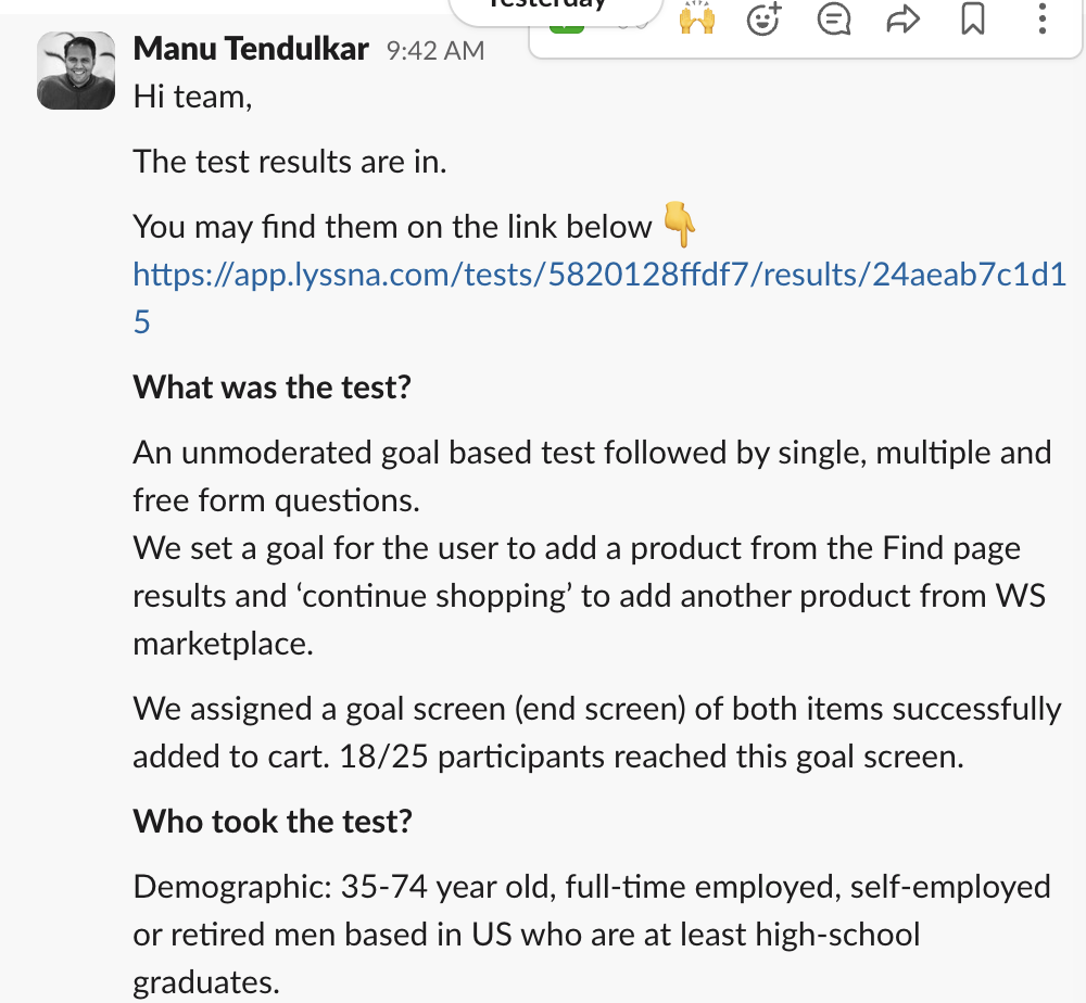 The team used these tools to generate rapid, actionable insights for many projects—including abandonment, purpose of session and marketplace testing.
