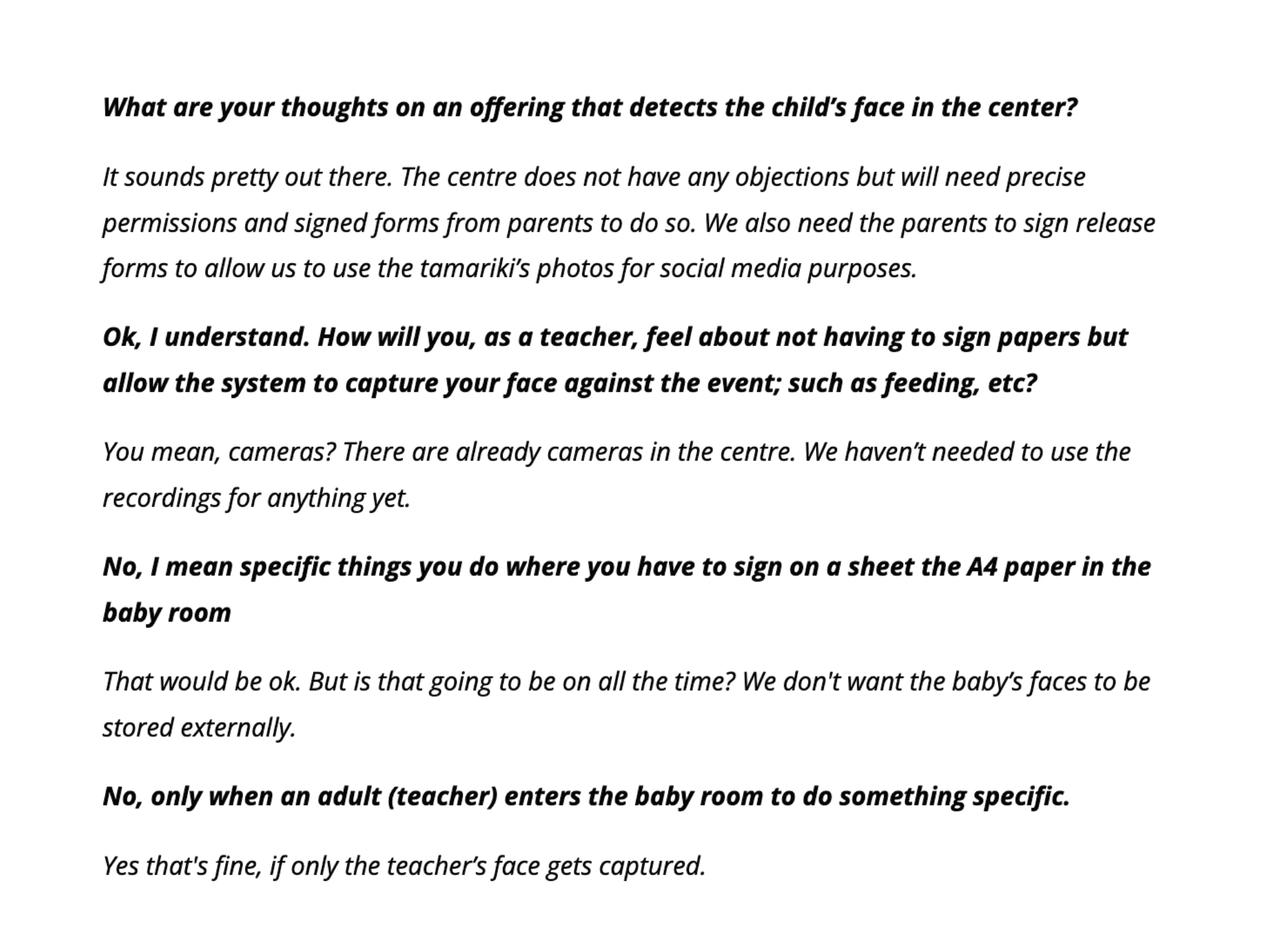 Below are some quotes from the first round of interviews and some desktop research I did with ECE teachers employed by Childcare Centres.
